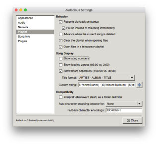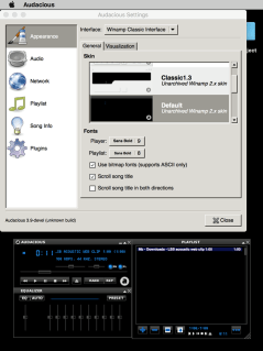 Audacious is a audio player with a focus on low resource use, high audio quality, and support for a wide range of audio formats. It is designed primarily for use on POSIX-compatible systems.